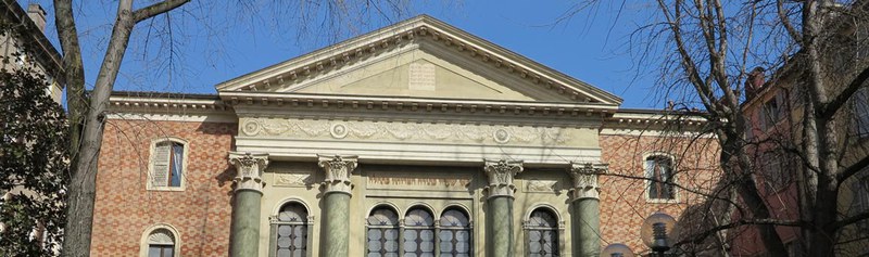 SynagogueThe building was designed by Ludovico Maglietta in 1873 and has a double façade in Via Coltellini and Piazza Mazzini.http://www.visitmodena.it/Plone/en/discover-modena/art-and-culture/churches-and-religious-buildings/modena/synagoguehttp://www.visitmodena.it/Plone/en/discover-modena/art-and-culture/churches-and-religious-buildings/modena/synagogue/@@download/image/sinagoga2.jpg