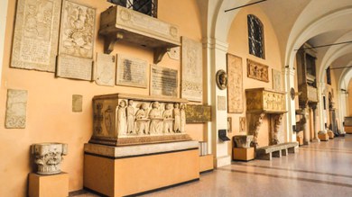 The monuments harmoniously distributed along the walls and the wide arches of the arcade on the ground floor of the eighteenth-century hotel of Arts, came from nuclei collectable of the House of Este and the court, from archaeological contexts and urban land, the city's churches, from reuses inserted in walls of the cathedral and the Ghirlandina.